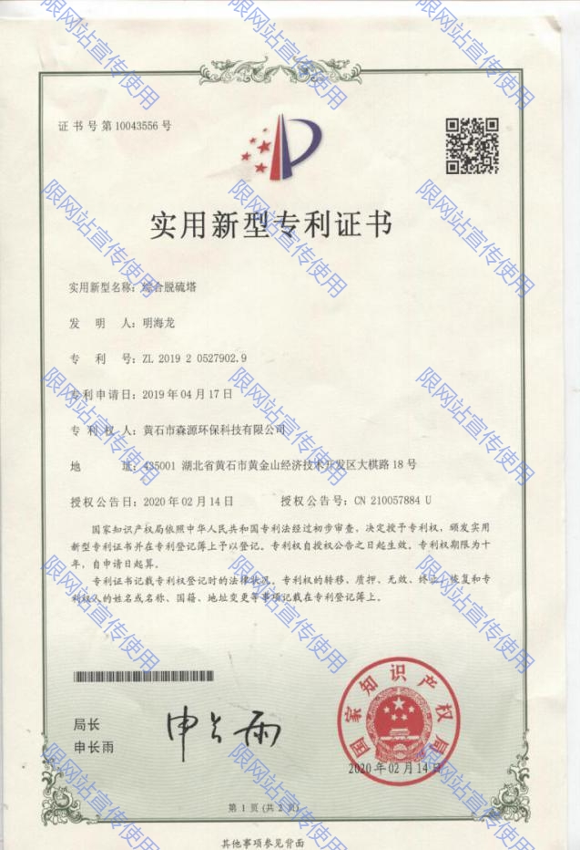 森源環(huán)保2023208949279_實用新型專利證書_ 一種帶有自清理機構(gòu)的脫硫風(fēng)機20231024