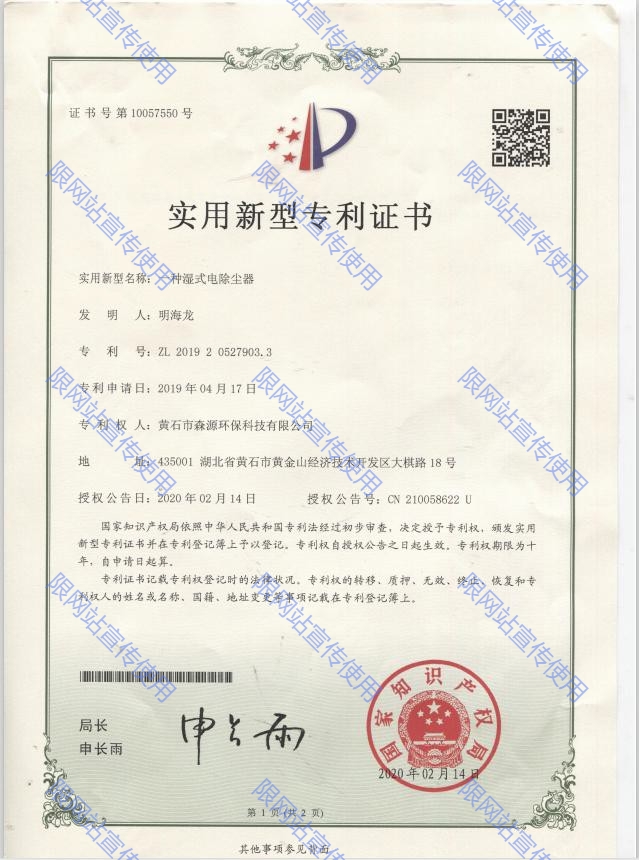 森源環(huán)保2023221191906_一種廢氣處理用活性炭吸附箱_實用新型專利證書