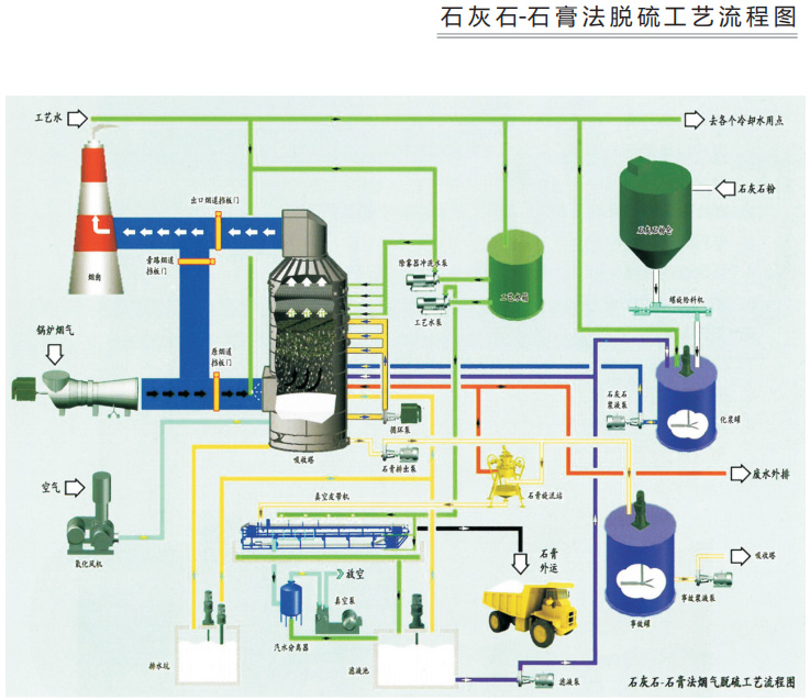 煙氣系統(tǒng):煙氣進(jìn)入脫硫吸收塔,經(jīng)降溫、洗滌、除霧后,進(jìn)入煙囪達(dá)標(biāo)排放。
