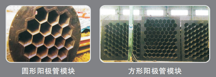 目前陽極材料的形狀主要有圓管型、板式、正六邊形,其中圓形由于其組裝成大型電除霧時利用率不高,會使電除霧器體型過大,板式經試驗得知對煙氣的氣體分布不理想,煙氣經過板式電除霧器時分布不均勻,阻力大,處理效率低。綜全考慮到材料的利用情況以及氣體分布狀況,采用六邊形的陽極管形狀,表面用碳纖維+石墨+樹脂涂刷,使其具有導電性能。